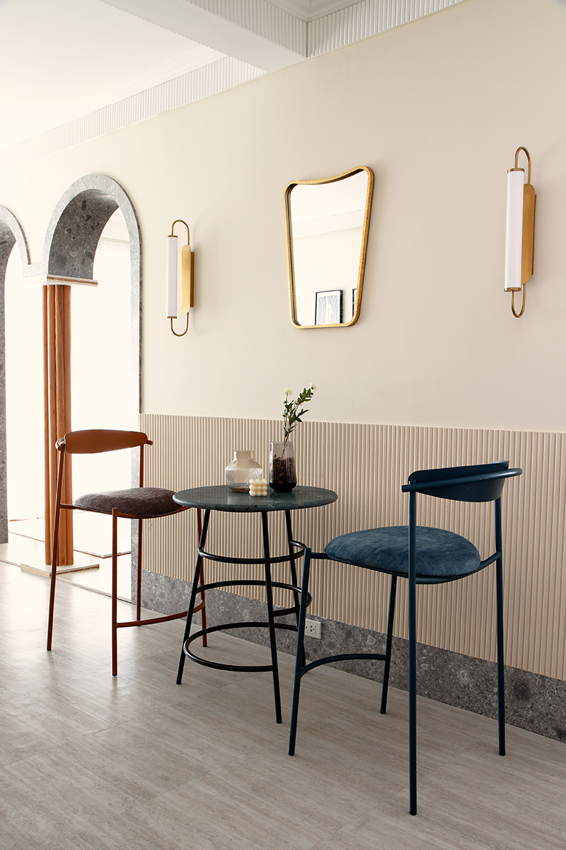 A minimal and cozy yet eye-catching furniture set that perfectly fits with every space in a house or a minimal style café. The unique concept behind this collection is that the curves and lines within the piece are all based on the shape of a circle which has been modified to create perfectly arranged elements.